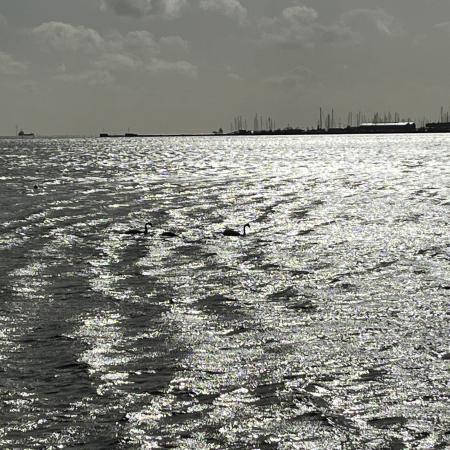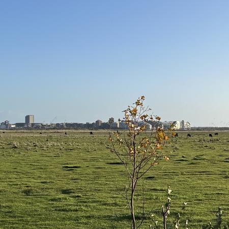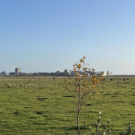 Men inden vi kom så langt, startede vi med et par hundrede meter på Kalvebodvej, inden vi kunne dreje ind i skoven igen og nyde mere af den solbeskinnede Kongelund, imens vi kantede os imod Amagers sydkyst, og efter noget tid blev belønnet med den storslåede udsigt imod Dragør med Øresundsbron og Peberholmen i baggrunden.