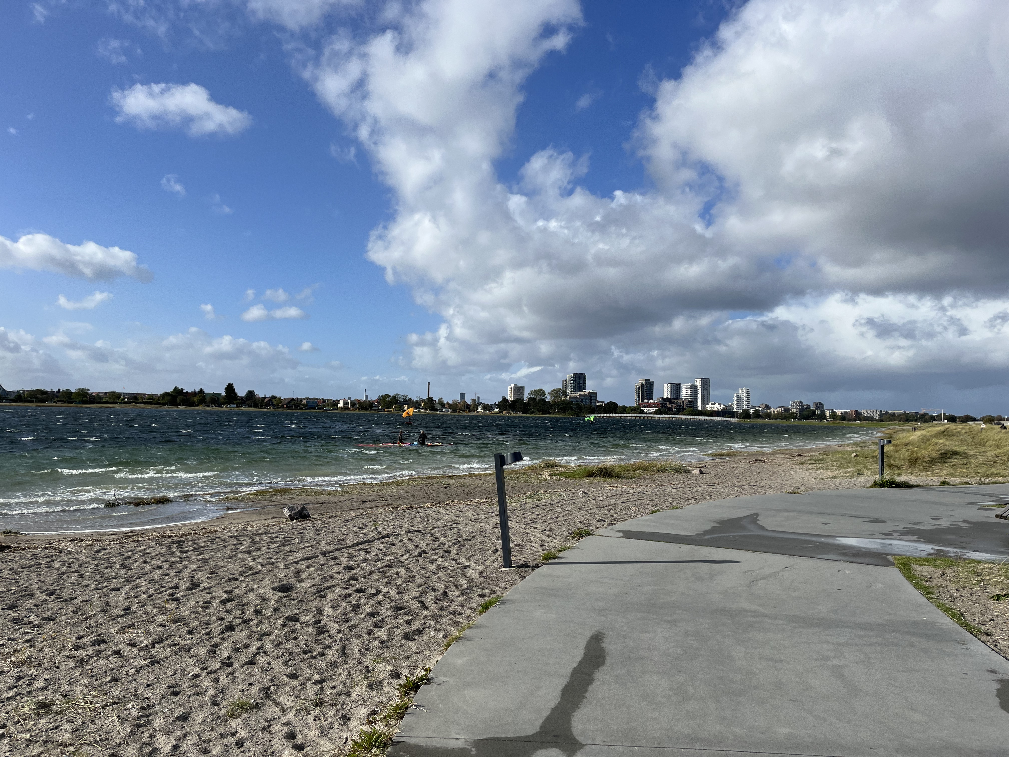 Selv efter fem kilometer kunne man stadig se sydsiden af Ørestad i horisonten. Det tog noget at frigøre sig fra byen.