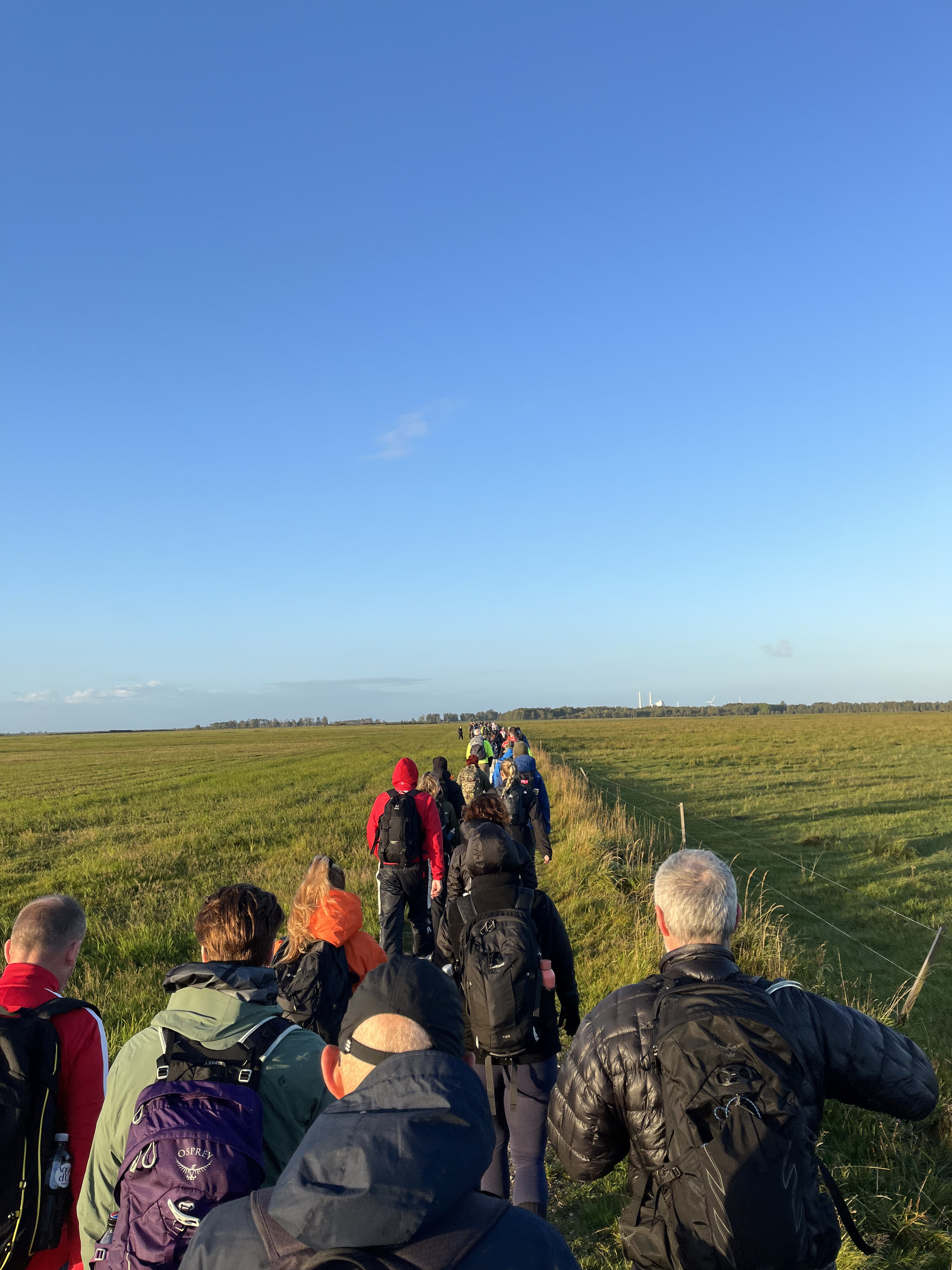 Selv om Dragør var i syne, havde vi alligevel et stykke vej derop, men heldigvis var vinden i ryggen, så det gav et godt puf på vejen. Der opstår en slags flok-effekt på sådan en tur, hvor man blot følger dem foran en, og det kunne man observere lige før Dragør, hvor jeg ved et tilfælde fik kigget på mit ur, og kunne se, at ruten slog et skarpt sving. Dog var alle vandrerne foran mig blot fortsat ligeud, og mon ikke det var fordi de blot fulgte hinanden. Nuancen var dog blot et par stier med omkring 50 meter imellem sig, så der var ingen som farede vild eller kom på unødige lange omveje.