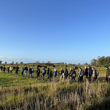 Vi mødte både gæs og køer på fælleden, og de første fem kilometer gik som en leg - dog stadig i tæt gåsegang så som ene-gænger kunne man underholde sig med at lytte lidt ind på andre folks samtaler.