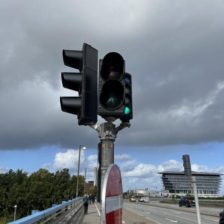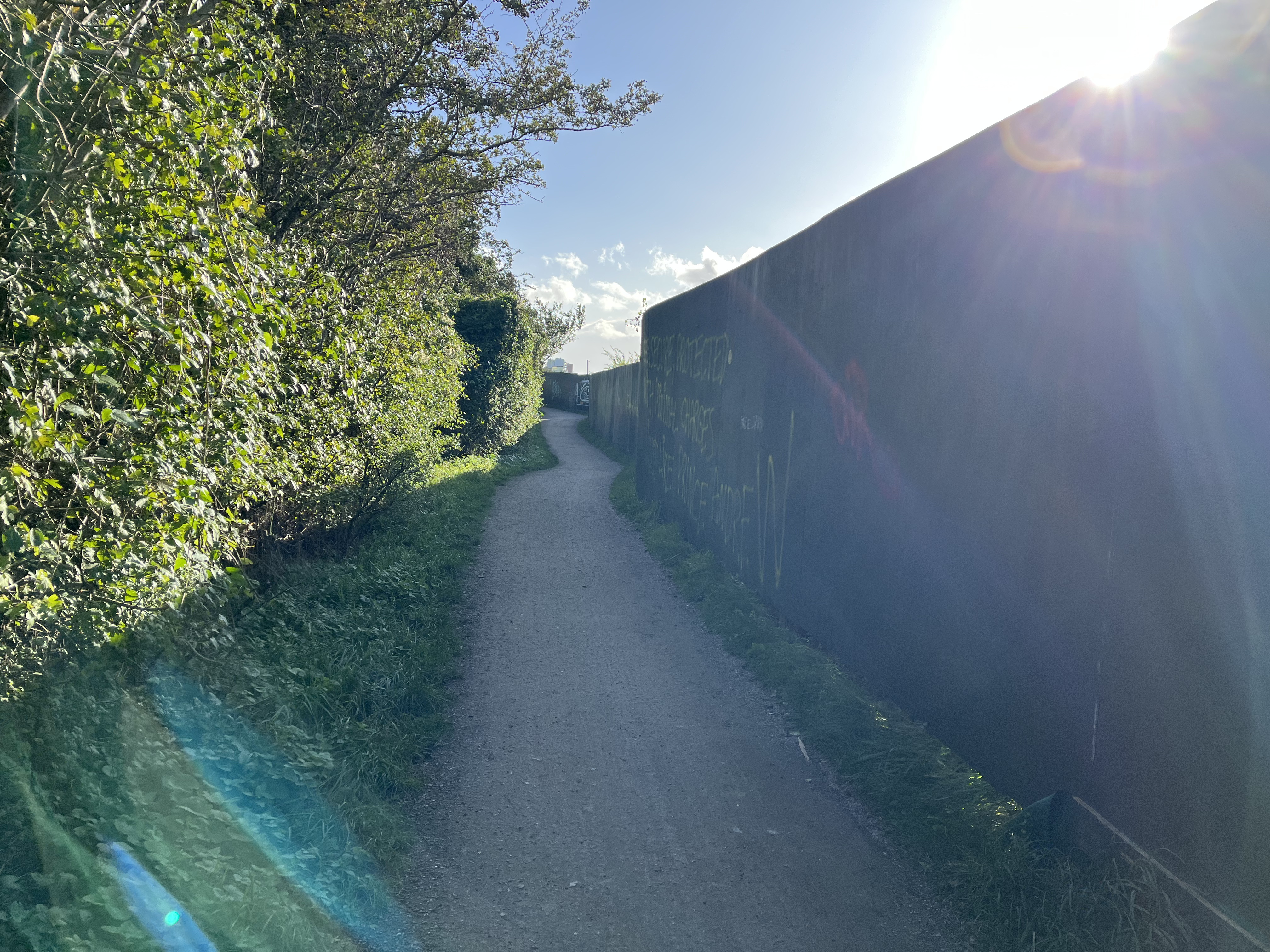 De 40 kilometer blev ramt, netop som jeg nåede hegnet til den omstridte byggeplads lige nord for Vejlands Alle, og kort efter drejede vi tilbage imod øst og kunstværket som onde tunger har døbt "Amagers store fallos".