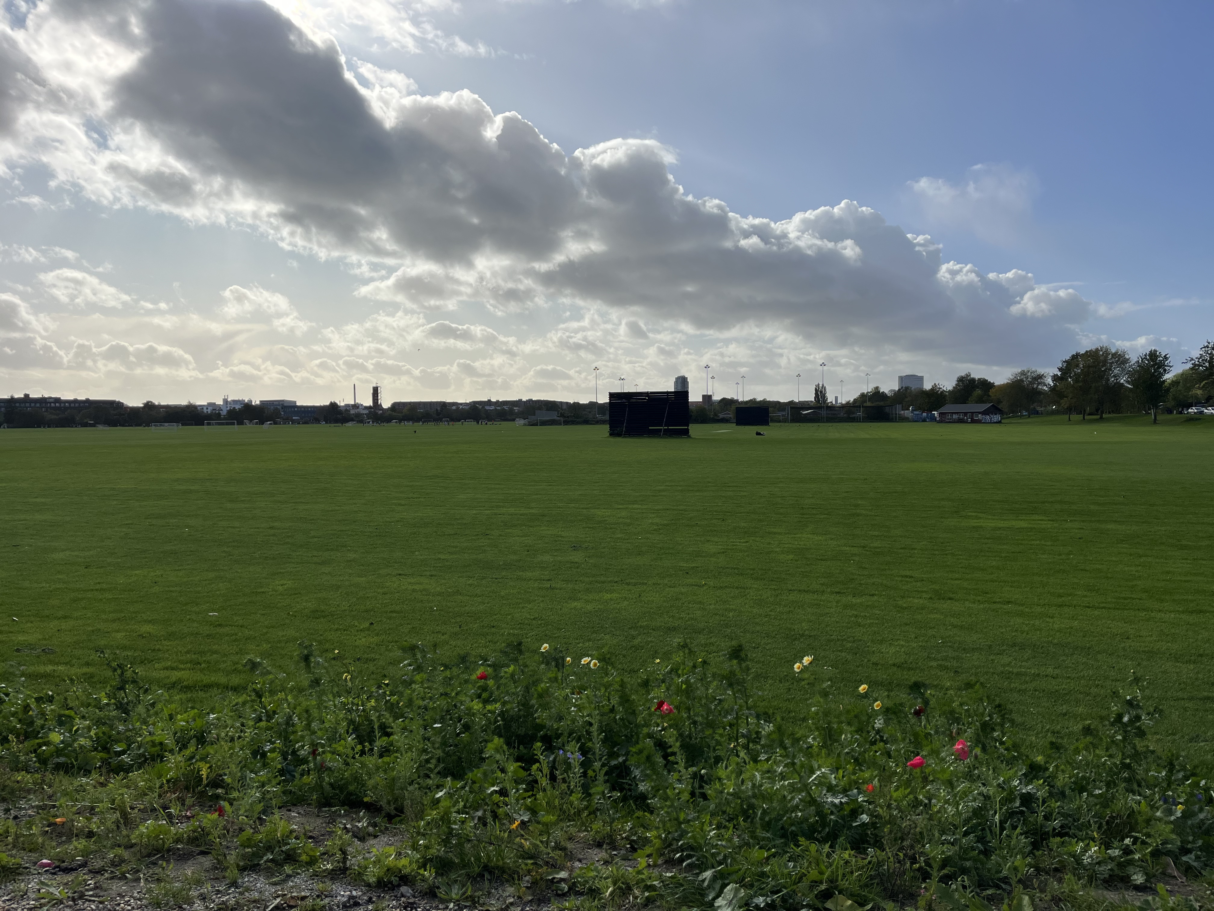 Fra hotellet drejede vi direkte over til nordsiden af Amager Fælled, som kun ligger 2 kilometer fra Rådhuspladsen og det er lidt fantastisk, at man kan komme så tæt på Københavns bymidte udelukkende igennem grønne omgivelser. Det var adskillige kilometer siden, jeg havde set andre deltagere, og her på fælleden virkede der et kort øjeblik helt mennesketomt. Jeg måtte lige sidde på en bænk til, men benene var lige ømme om jeg gik, stod eller sad, og når det var på den måde, kunne jeg ligeså godt bare se at komme på benene igen og imod mållinjen.