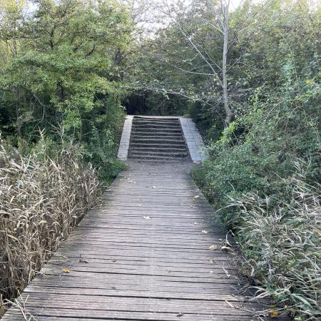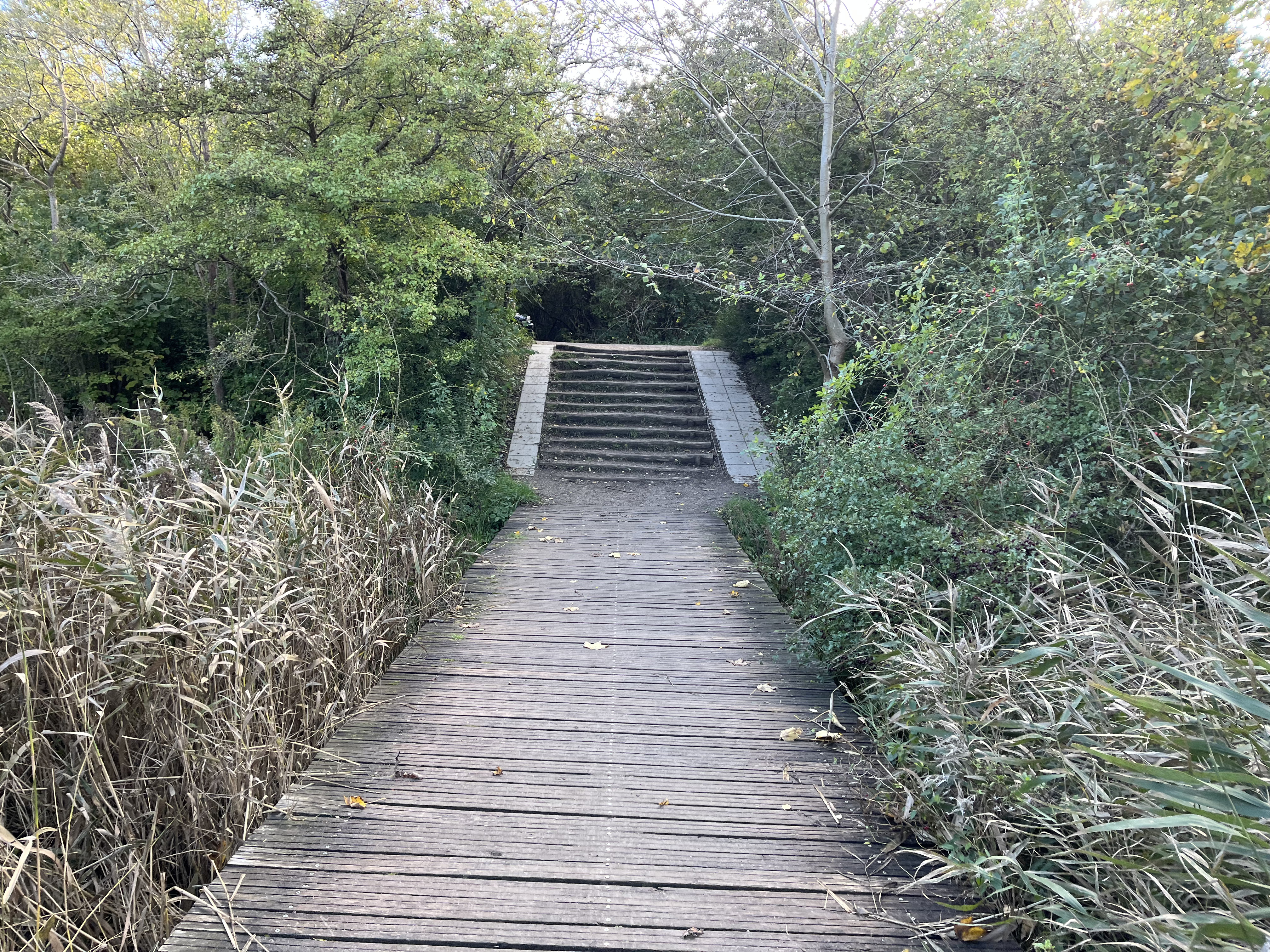 Efter at have passeret hvad der må have været Amagers eneste bakke på omtrent fire meter i højden, begyndte der langsomt at komme bevoksning omkring os, og kort tid efter var vi omringet af ung skov, som tog os hele vejen ned til sydsiden af den store dæmning ud imod Køge Bugt, og hvor jeg også kunne fejre at runde de første 10 km, der var kommet lige så let som de 5 første.