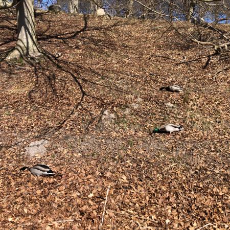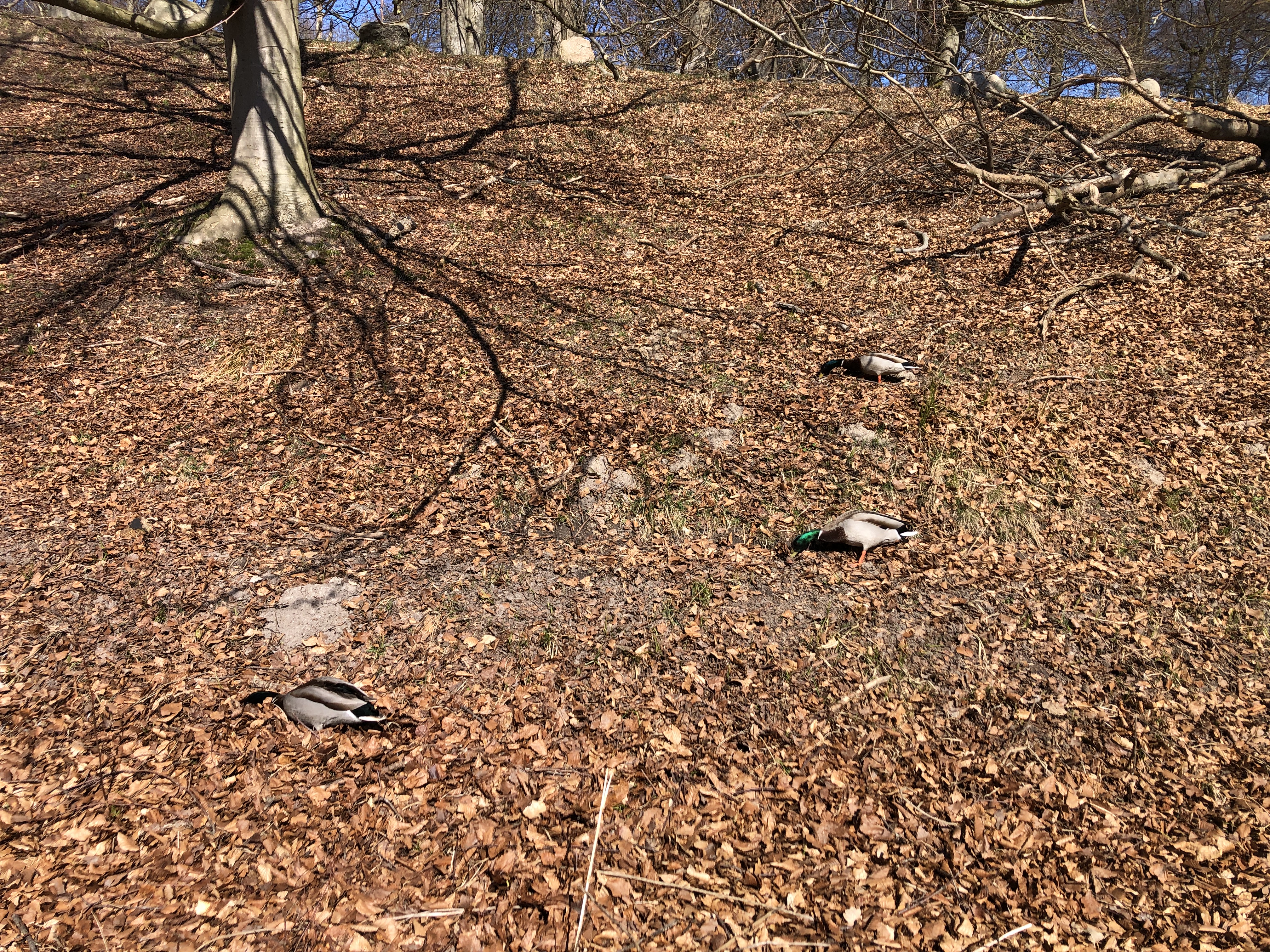 En del af fuglelivet var ænder, men jeg havde aldrig set ænder som disse. Flere ænder havde begravet sig i de visne blade, og kom kun op til overfladet, hvis man kom lidt for tæt på.