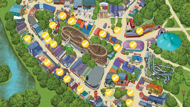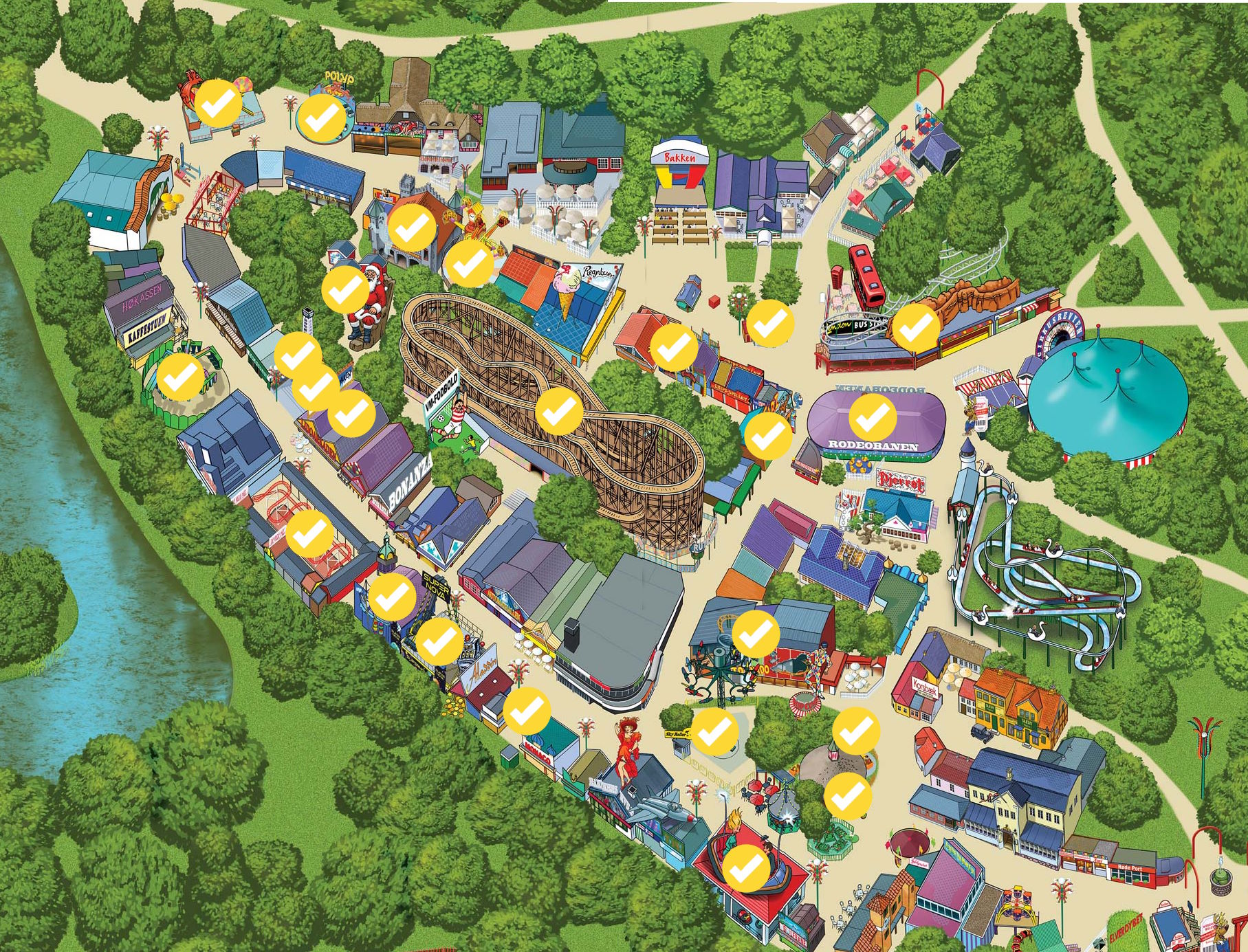 Som kortet indikerede nåede vi omkring 24 ud af bakkens 32 forlystelser, og mange af dem fik mere end et besøg, så det kunne sagtens betale sig at have turbånd. Desværre var vandrutsjebanen endnu ikke åbnet.