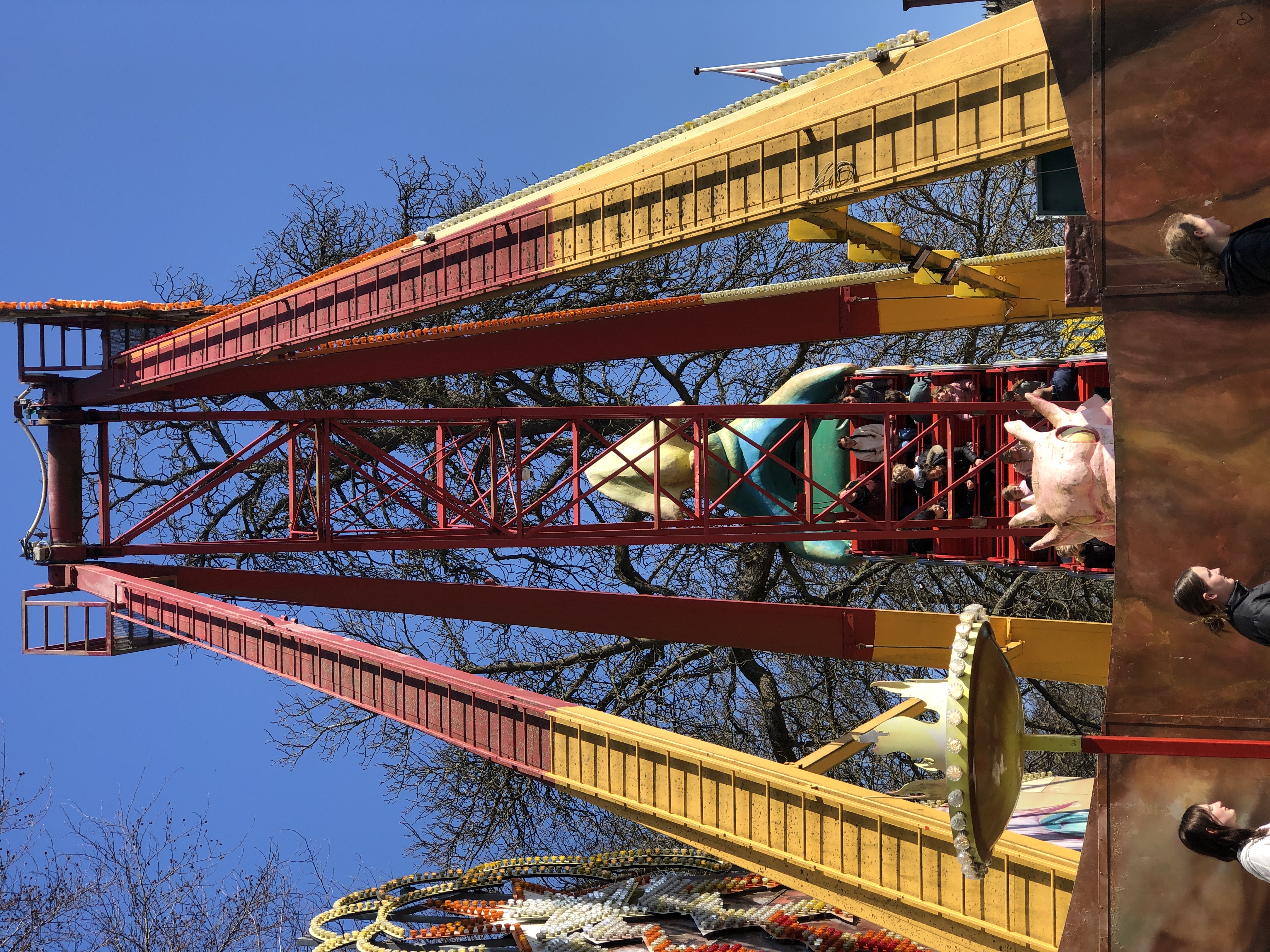 Første forlystelse var Tornadoen hvor vi fik lokket hele familien op, og det skulle vi aldrig have gjort, for den var alt for vild til både Sara og Sylvester, hvilket tog lidt af forlystelsesmoralen.