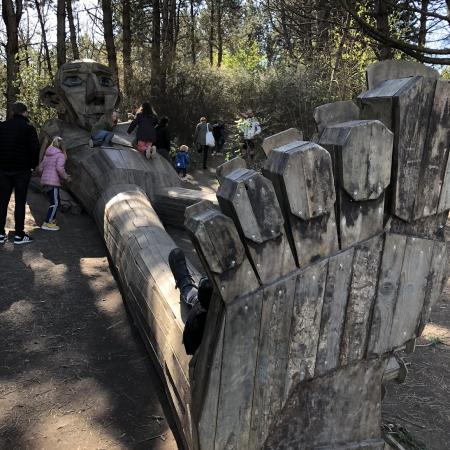 Strandparkerne omkring Arken var godt nok også et populært udflugtsmål i dag. Der var kitesurfere, folk med drager og legepladsen var fyldt med børn, som i tæthed alle kunne andrage bøder på 1.500,-. Oscar var en kilometers penge væk fra museet og var kæmpe nummer 3 på kortet, men den sidste på vores tur.