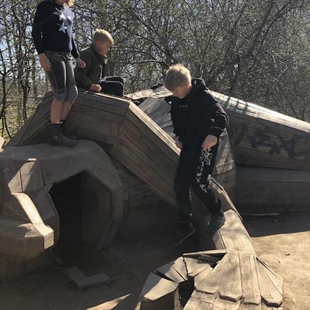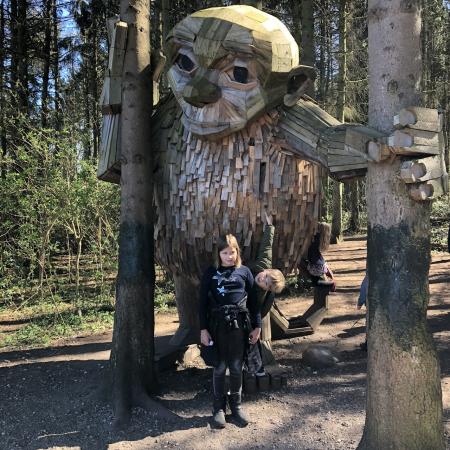 Jeg var slet ikke bekendt med dette grønne område, der ligger ude bag Taastrup, og hvor man også kan finde Teknologisk Institut, men det er jo det herlige ved denne slags ture. Der var motionsspor af varierende længde, men heldigvis skulle man ikke så langt, for at finde Venlige Teddy, der var vores tredje kæmpe og nummer seks på kortet. Med hans lange arme og korte statur kunne han hjælpe børnene over vandet.