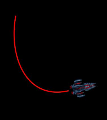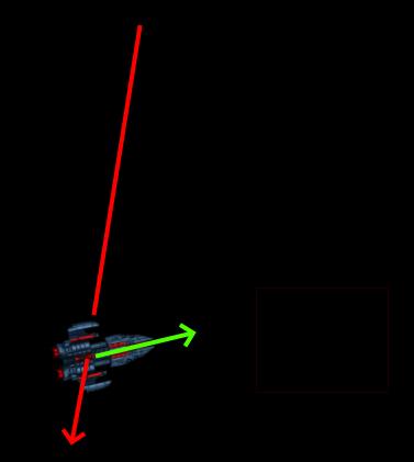 Men den effekt jeg har skabt, er, at hvis jeg accelererer mit rumskib, og efterfølgende roterer det, så ændrer det kurs, hvilket nærmere minder om en bil.