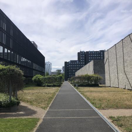 Turen starter op af SEBs hovedkvarter, hvor en sti slynger sig frem og tilbage imellem træer og planter, der skyder op igennem cementfladerne. Herefter havner man på taget af Rigsarkivet, hvor man befinder sig på en lidt kedelig græsplæne men omgivet af futuristiske bygninger.