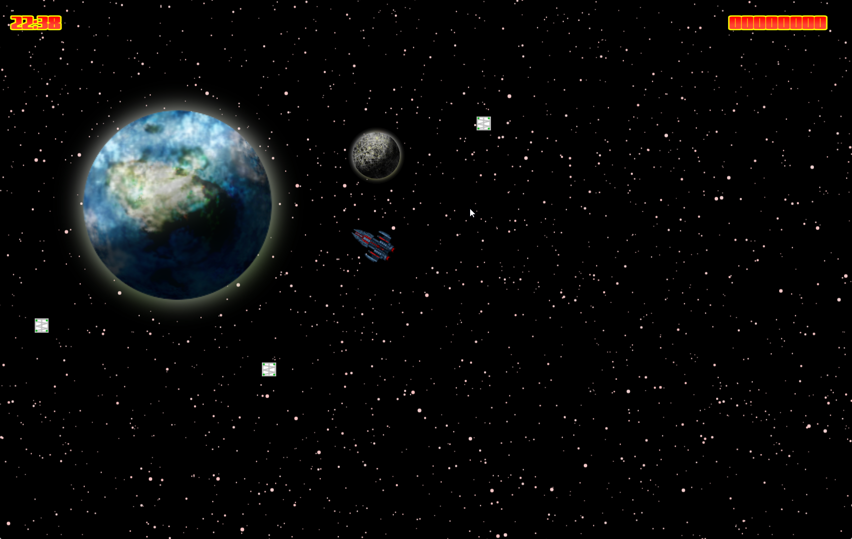 planet, hvor jeg placerer kassen. På den måde kan jeg også styre sværhedsgraden, ved at lægge kasserne tæt på planeterne med tilhørende risiko for at styrte ned eller