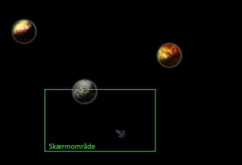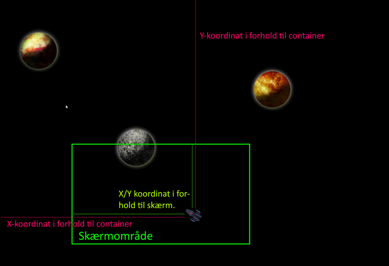objekt der ligger over dette, hvilket betyder at mit rumskibs koordinat er dets placering i forhold til containeren og ikke i forhold til skærmen.