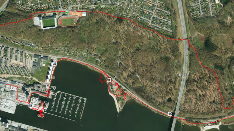 Vi havde egentligt talt om og køre ud og vandre ved Jellingestenen, men vores møde med Vejles nye havnefront, fik os til at ændre planer og i stedet tage en tur, der bragte os igennem havnen og ud langs fjorden. Da turen også bragte os op i baglandet, så var der også en del højdemeter i dagens vandring.