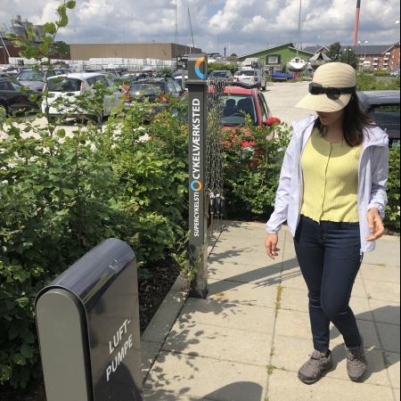 Der var også supercykelstier i Vejle, men de virkede alligevel et skridt foran os, for de kunne ikke bare stille med luftpumper, men også med et lille cykelværksted, hvor der hang værktøj klar til at reparere på sin cykel.