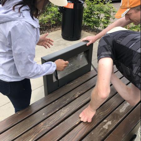 Der var også plads til den udmattede og endda med mulighed for, at oplade sin telefon og andre elektroniske enheder, drevet af en enkelt solcelle over bænken. Og det mest imponerende var, at det rent faktisk fungerede.