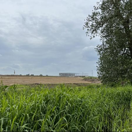Det åbne landskab blev brudt af de enorme bygninger i det nye transportcenter, hvis mure nærmest strakte sig imod horisonten, hvor den næste bygning så tog over, men omvendt var kvaliteten af stien markant bedre her, selv om det nok kom ned til, at den lokale landmand får et par tusinde kroner, for at køre en traktor langs åen et par gange om året.