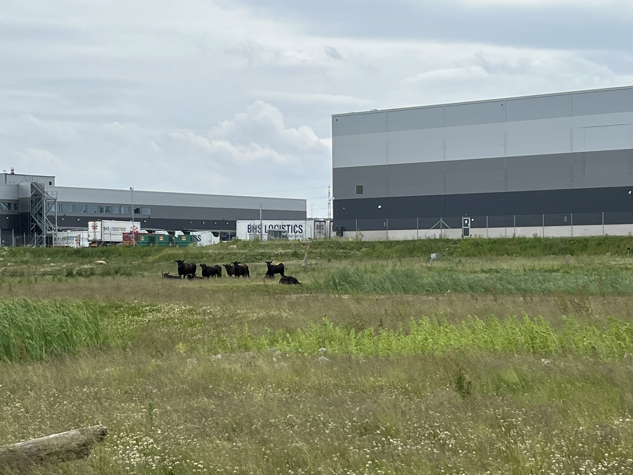 På den anden side af motorvejen var kvæget sort, og så ud som om, at de ikke havde set mennesker i umindelige tider.