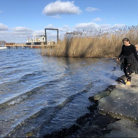 Den sidste del af turen gik langs vandet fra Barsøfærgens leje og tilbage til sommerhuset. Det var en stenstrand, hvor der mange steder var kilder der løb imellem stenene, så det gav anledning til nogle sidste eventyr.