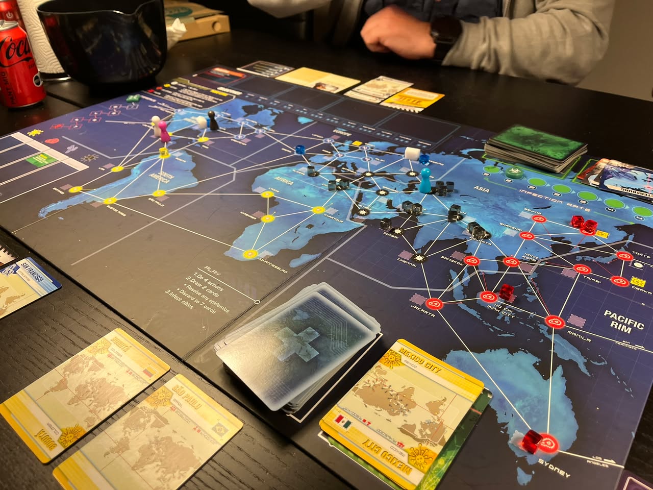 Benjamin, 2x Anders og jeg har sat os for at redde verden, og har endeligt brudt forseglingen på mit Pandemic Legacy. Efter en runde, hvor vi fik stryg, kom vi ind i udfordringen og klarede både januar, februar og marts.