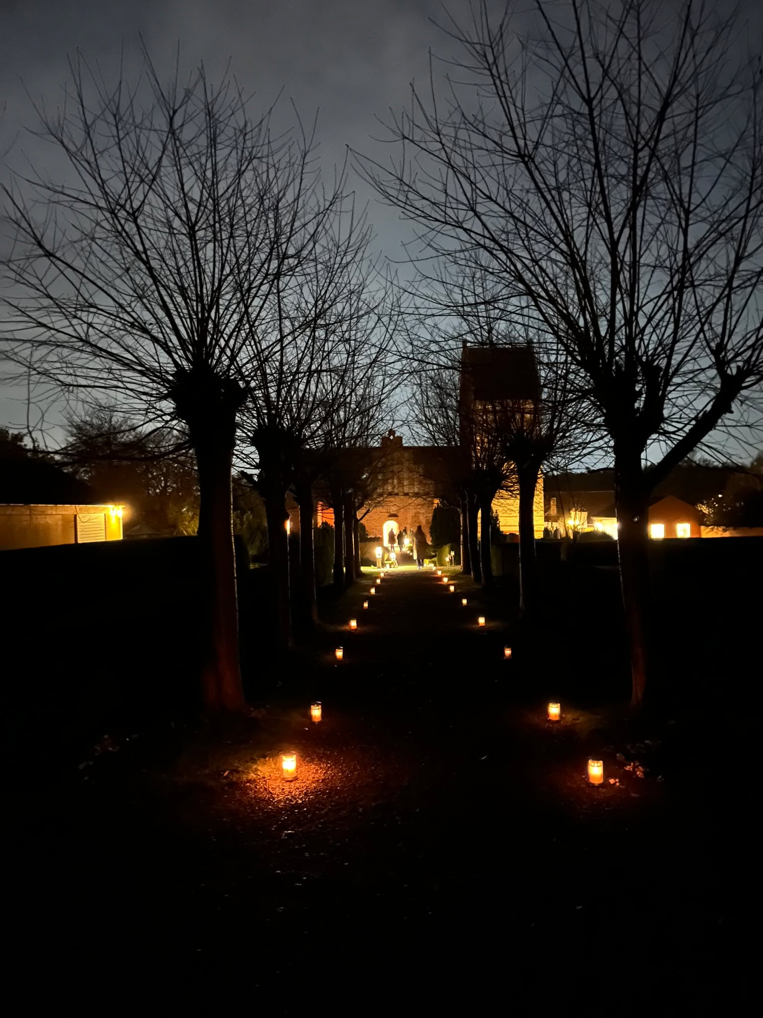 Ungdomskoret sang med og sang for, og de var godt nok gode. Efter gudstjenesten kunne man stille vandre ud på kirkegården, som var flot lyst op med en allé af stearinlys, og så kunne man sætte et lys i mørket, og mindes dem vi har mistet. Jeg sendte en kærlig tanke til især mor og svigermor.