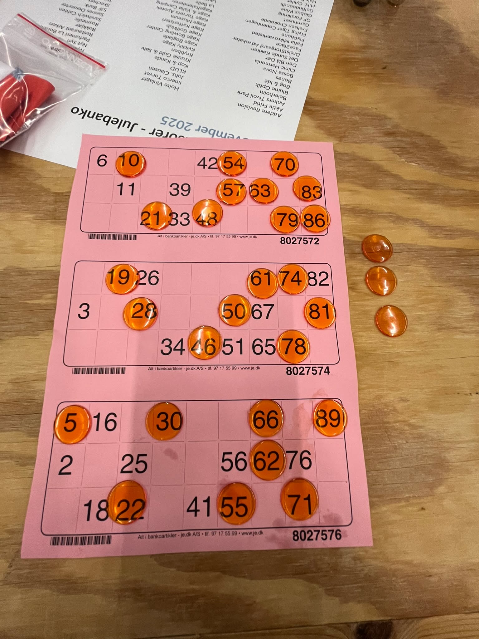 Sara havde inviteret til banko - nærmere betegnet Køge Handels Julebanko. Og der fik man godt nok noget for pengene, for hele 18 spil var der linet op til, og aftenen løb op imod de 4 timer. Endda uden nogen gevinst. Men når der er så mange mennesker samlet, så kan man have lidt sjov med statistik og sandsynlighed.