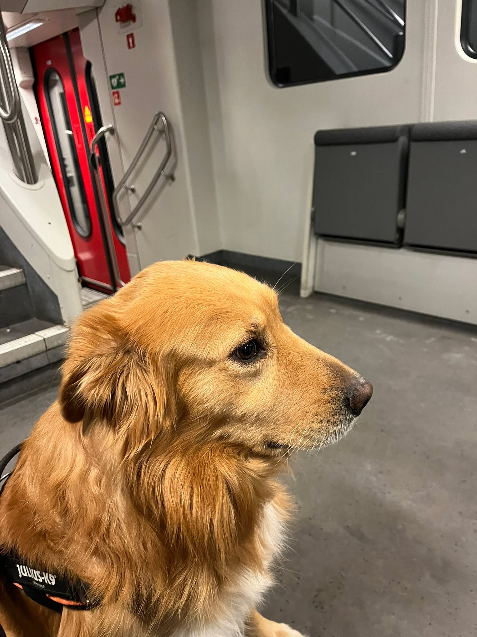 Jeg havde lovet Mads fra Digital IQ en hund til vores roadmapmøde, og da bilen var brudt sammen, måtte jeg tage Targi med i toget, hvilket var en grænseoverskridende oplevelse (for hunden), men han klarede det. Og så fik han som sædvanlig et fin dag som arbejdshund med klap, leg, masser af mad ved frokostbordet og en tur i hundeparken, så han sover de næste 2-3 dage.<