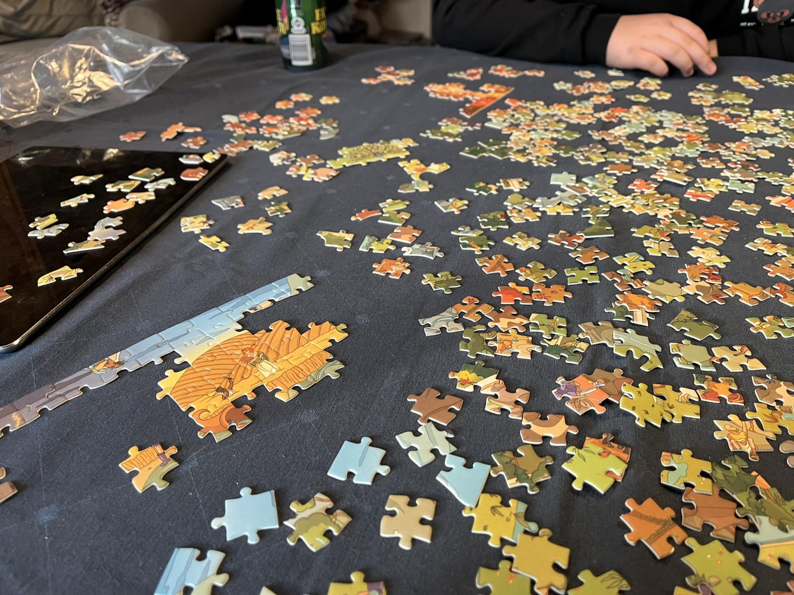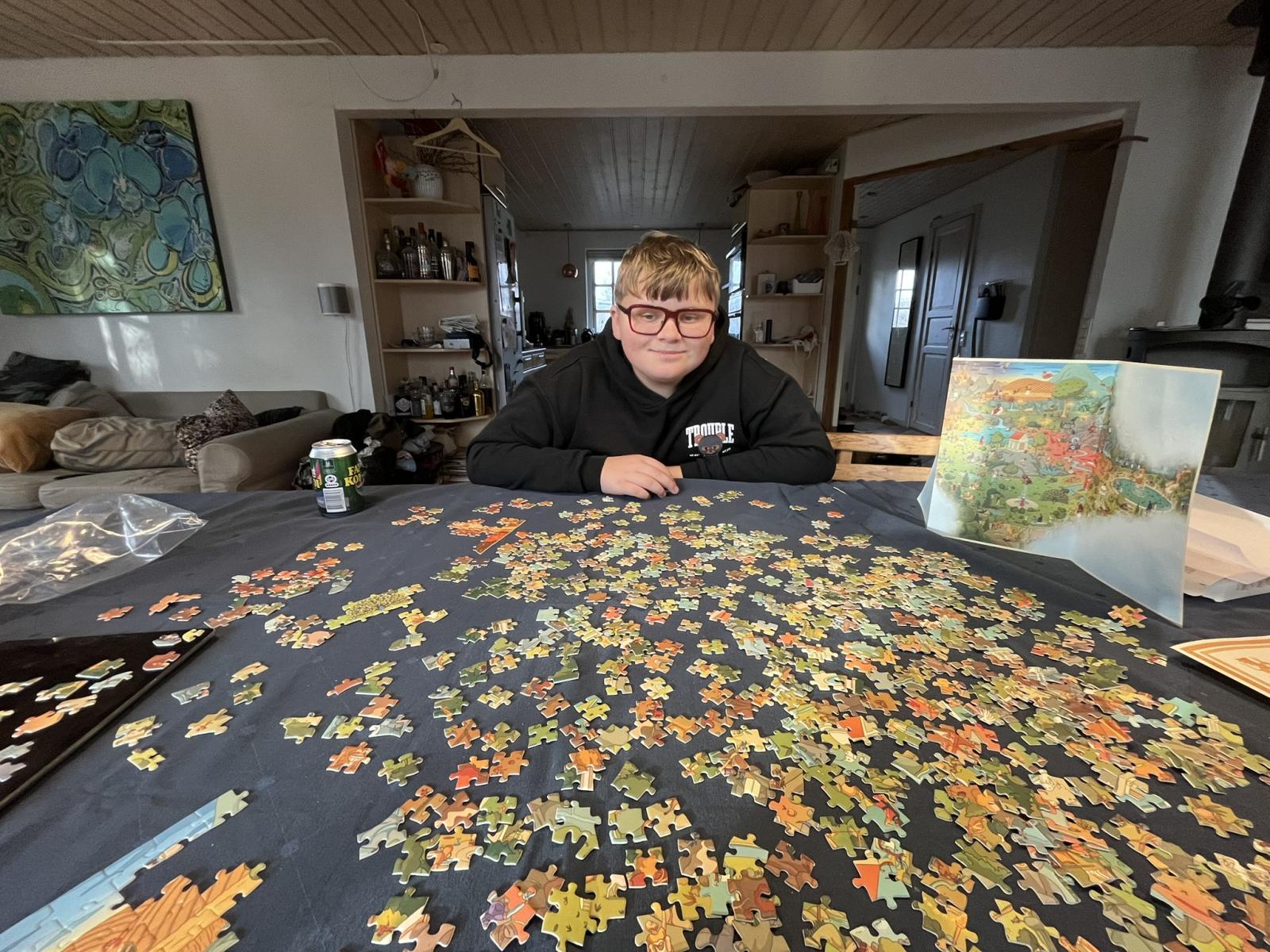 Det er en mission jeg har sat mig for at løse med Sylvester, og da vi åbnede æske A væltede det ud med puslespilsbrikker, og missionen var: Løs puslespillet.