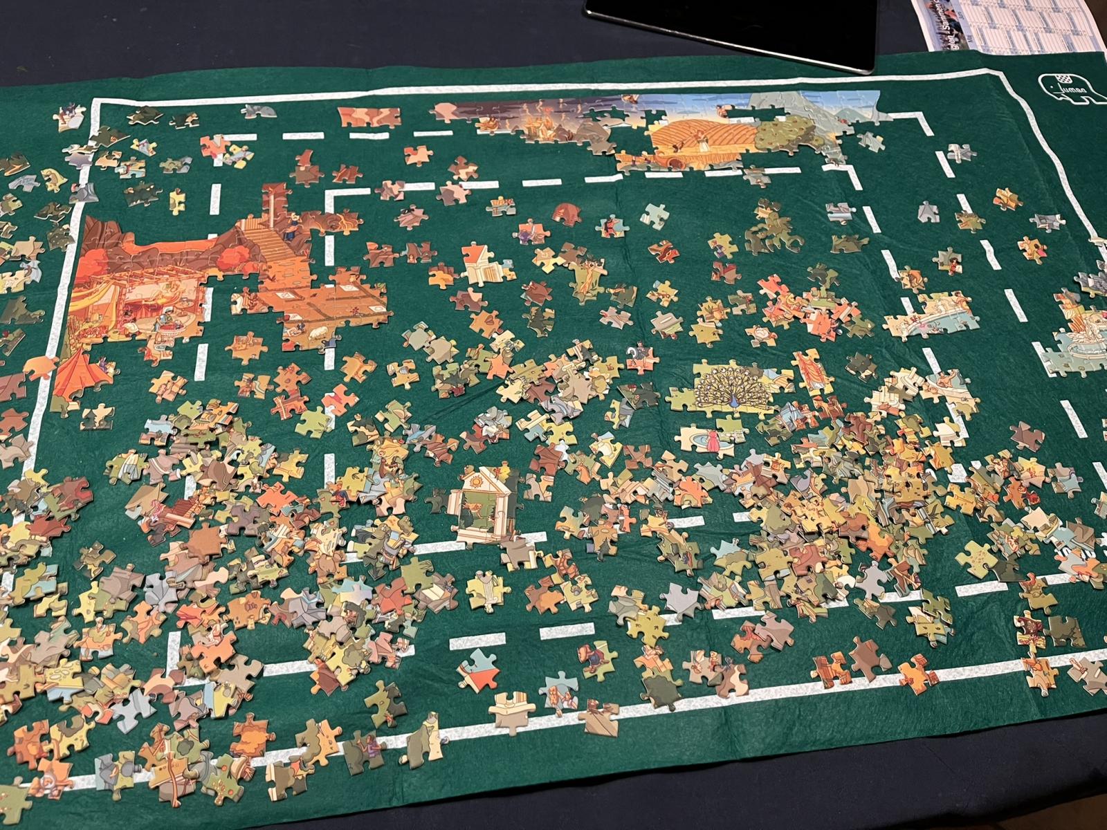 Det skrider (langsomt) fremad med Pandoras Legacy. Vi har fået samlet et hjørne og en kant. Første hurdle med dette puslespil, er at det ikke er rektangulært, men har en bølget kant, hvilket vi fandt ud af, da vi havde fundet omtrent 10 hjørnebrikker.