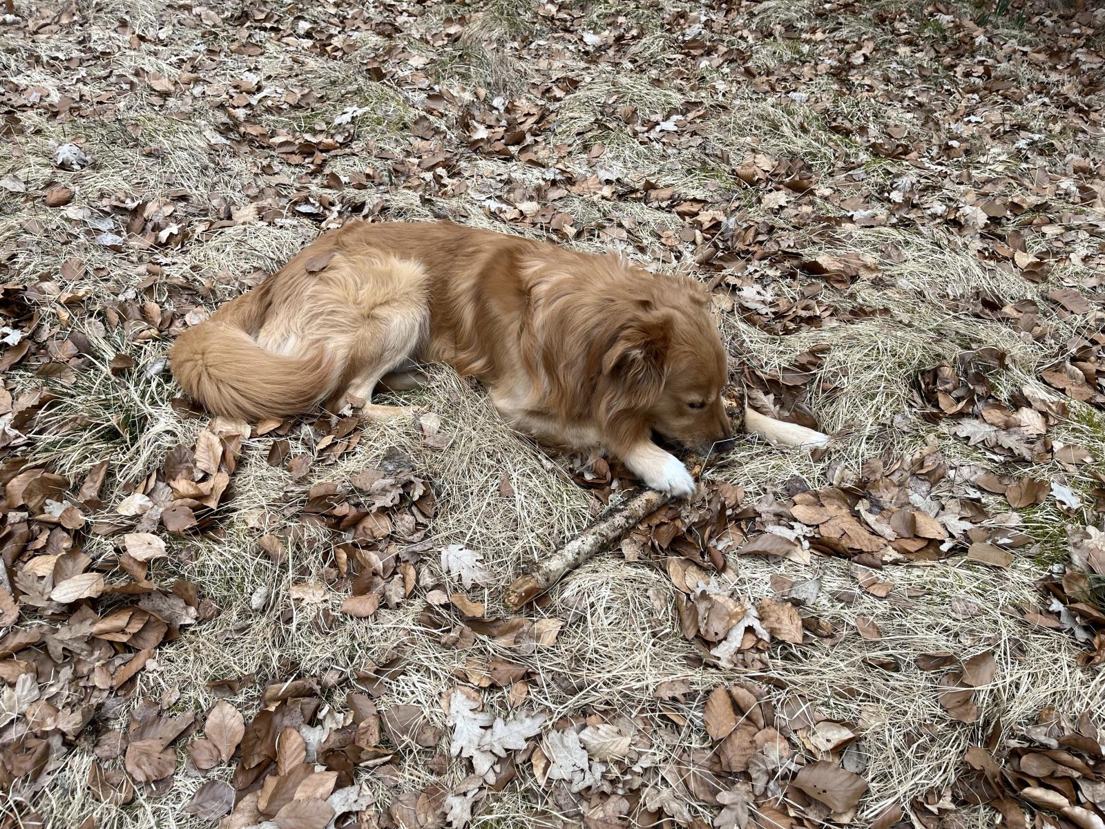 Det er altid spændende at ankomme til vores hus som de første, for udfordringen er altid: Hvad er gået i stykker over vinteren? Heldigvis havde jeg været så forudseende, at både sætte en radiator i køkkenet og i badeværelset, så der var intet der var frostsprængt. Desværre brummede vandpumpen kun svagt når man satte den til, men efter at have vandret en tur rundt om huset og bandet i det stille, så forsøgte jeg igen, og pludselig var der liv i den. Det var et påskemirakel, for det betød så at ingenting var gået i stykker over vinteret. Targi var især glad for at være ankommet og rullede sig muntert i græsset. Vi andre frøs indenfor selv om vi havde to lag tøj på.